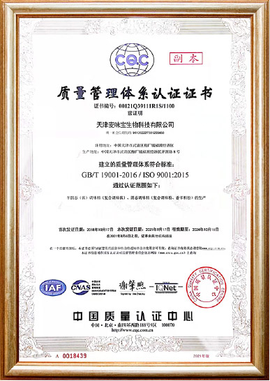 為適應公司發展及廣大客戶的需求,天津麥味寶生物科技有限公司于2017年在天津市武清區成立,新建2萬平米的調味品研發及生產基地。公司擁有標準化生產車間、先進的生產設備、專業的流水線,年產能達上萬噸,且配備有專業的研發室及化驗室,確保產品符合相關標準。